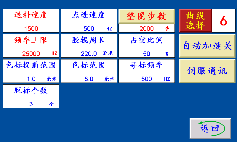 脱标个数:设定N个,制作彩色制品时,跟踪N次色标点,跟踪不住自动停机。