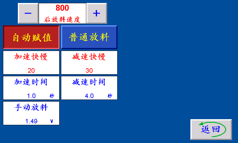 自动赋值:在运行时,后放料速度会自动调整到合适的速度值。