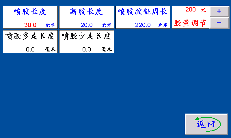 喷胶长度:料送到此长度时,喷胶信号输出的长度。