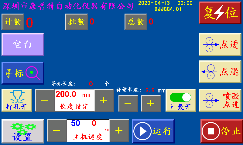 无补偿信号:补偿送料伺服(步进)电机多走少走由主页上补偿长度控制。
