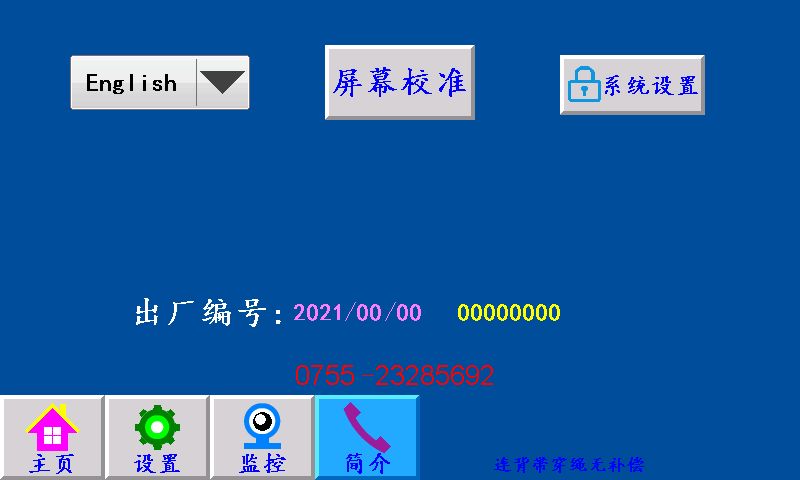 二、简介 English/中文:中文和英文界面切换按键。 系统设置:按此键输入正确的密码,方可进入。